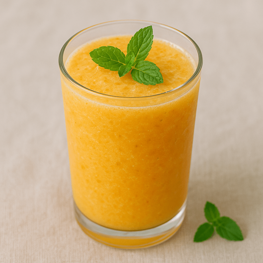 Sirva imediatamente em copos altos, decorados com folhas de hortelã.